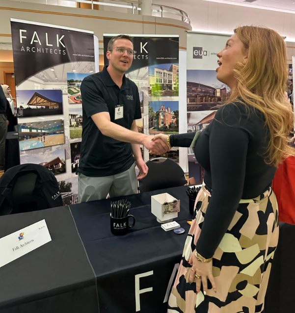 Falk Architect’s Community Liason, Sean Kuno, meeting with architectural and interior design students interested in full time or part time employment at the KU hiring fair. We also attended the KSU hiring fair this year. If you’re looking for a job, reach out to us! We’re always looking for top tier talent.